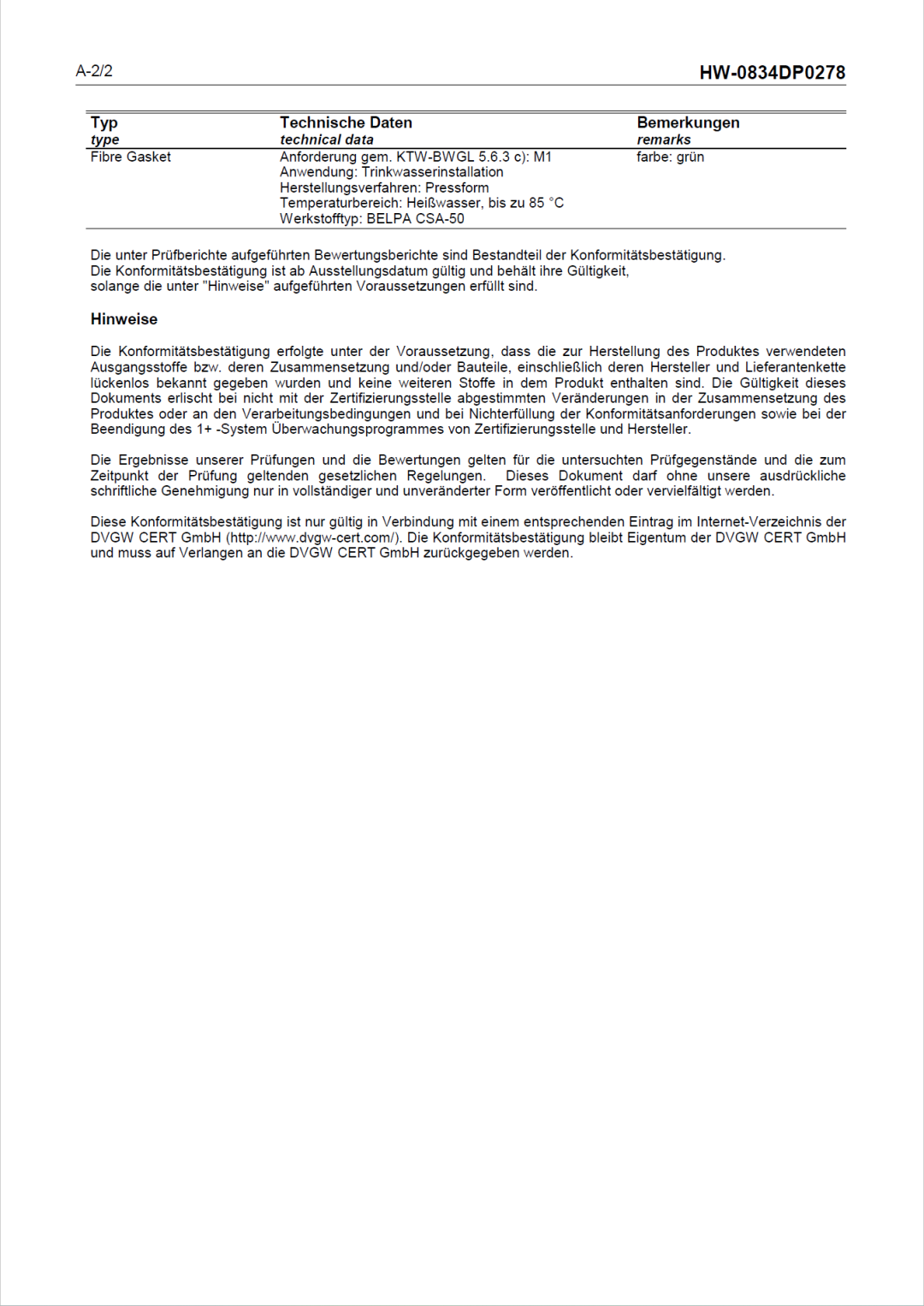 At present, our partner, Spanish Label BELPA CSA-50 asbestos-free sheet has been certified by KTW-BWGL.