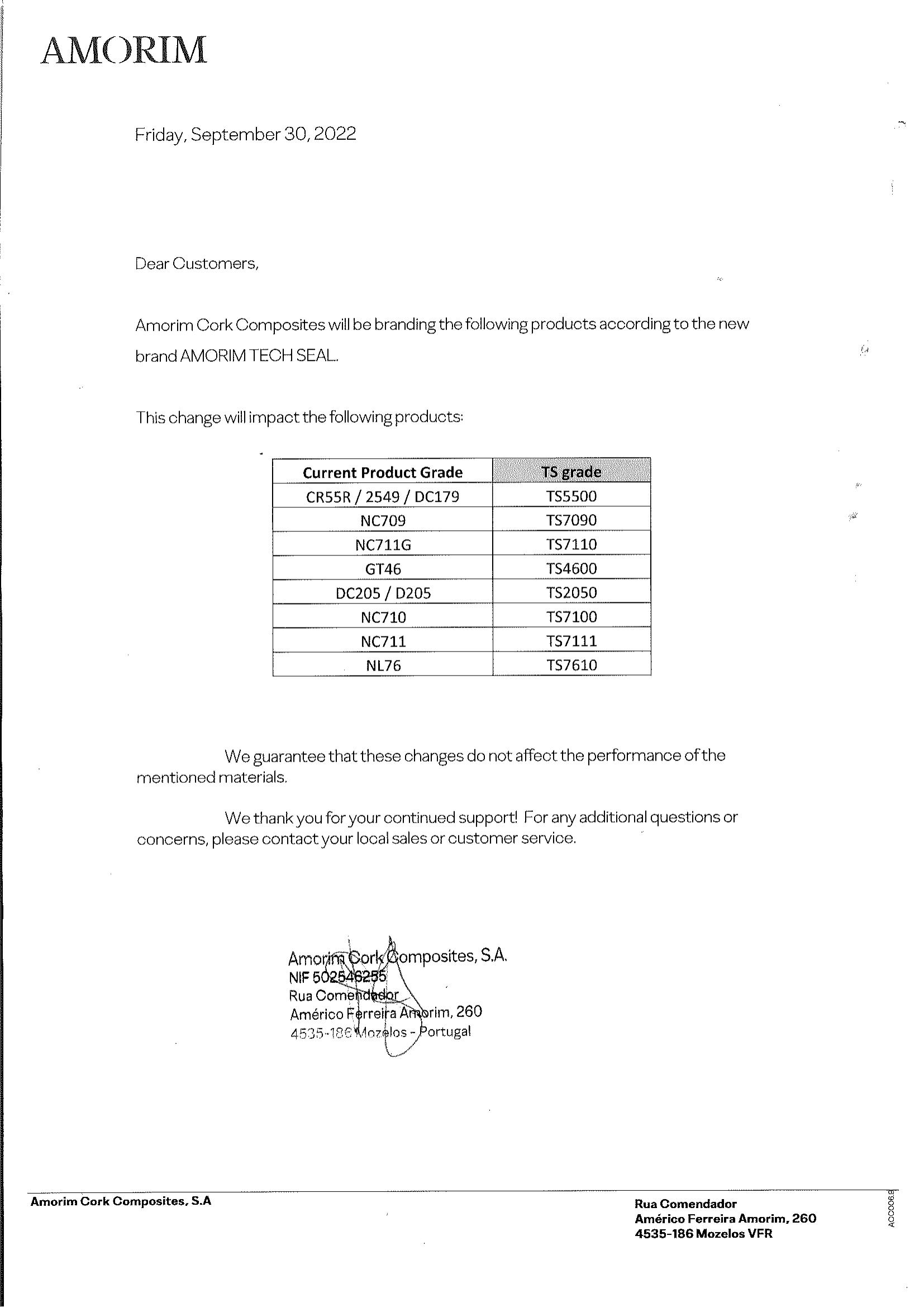 Amorim Cork Composites將按照新的品牌AMORIM TECH SEAL對材料進(jìn)行推廣。