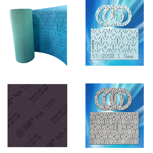 2.中高溫型(無石棉纖維橡膠板,四氟板/改性四氟板):通常使用溫度<250℃,常用型號有ST-2028-39,ST-2058,AFM34,TF1570改性四氟板,24SH膨體四氟板等,適用于汽油機(jī)、柴油機(jī),工業(yè)泵閥,石化、壓縮機(jī)、換熱器、食品、制藥等行業(yè)。